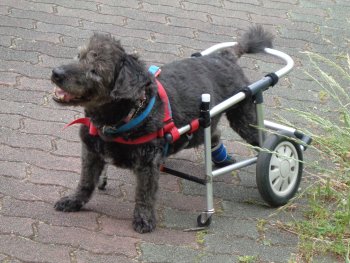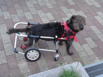 いままでは、後ろ2輪だけでしたが、前足も少しふらつくようになり、前を支える様に4輪にして散歩をしています。